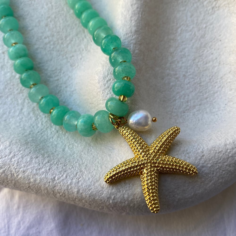 - Stunning rondelle shaped dyed Agate mint beads - Glass spacers - 18k Gold plated over brass charms - 18k Gold Plated bolt clasp - Handmade in Perth - Very limited numbers - Approx 43-47cm